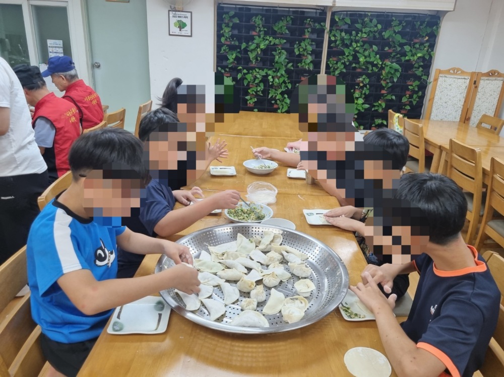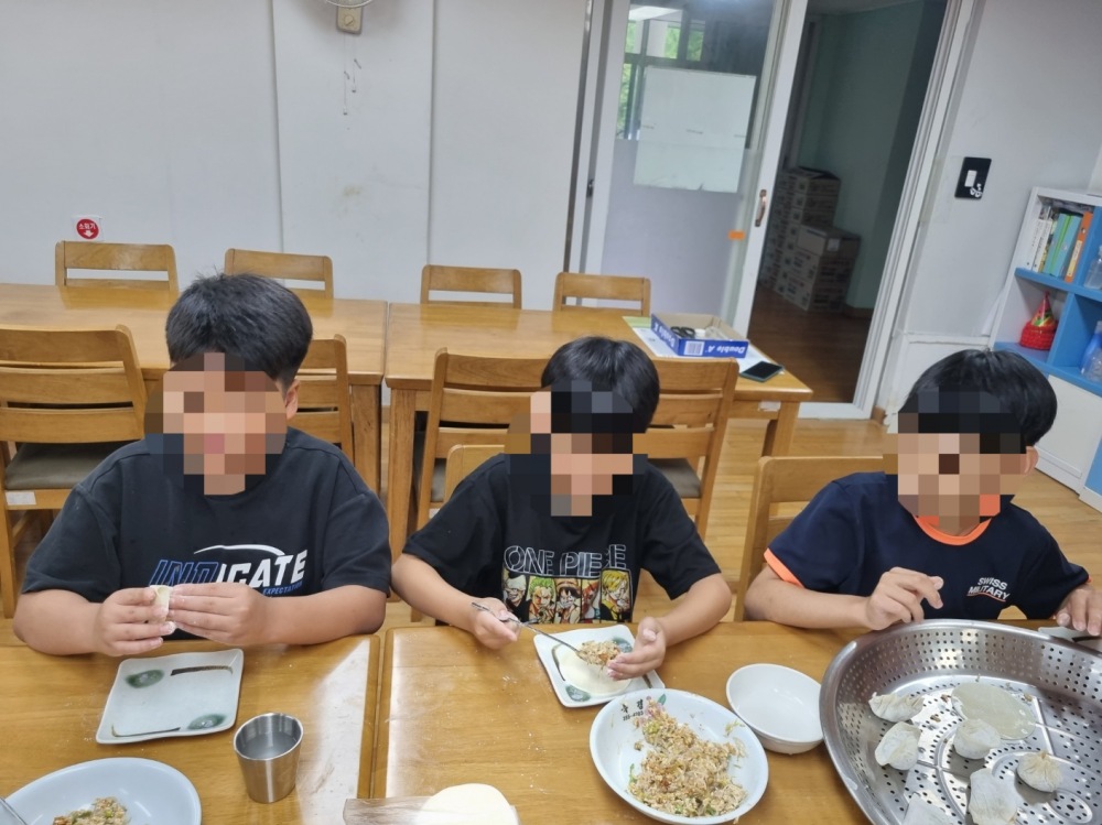 아찾사 봉사자분들과 함께 추석을 맞아 만두빚기를 해보았습니다. 준비된 재료를 이용하여 나만의 방법과 모양으로 만든 만두를 보며 신기해하고 흐뭇해 하는 모습입니다. 우리들이 함께 만든 만두를 쪄서 점심과 함께 맛있게 나누어 먹었습니다. 재료부터 식사까지 준비해 주신 아찾사 봉사자분들께 감사드립니다.